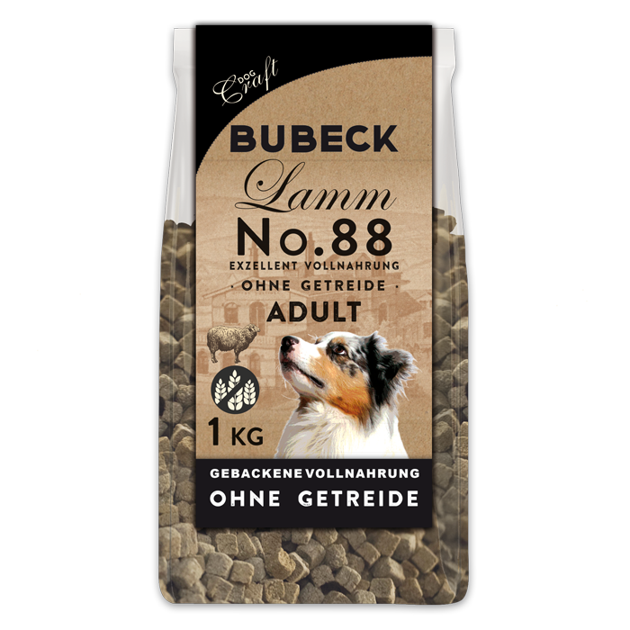 Lamm (Frischanteil vor dem Trocknen 53%), Kartoffelmehl, Kartoffelflocken, Amaranth, Volleipulver, Rapsöl, Apfel, Petersilie, Karotten, Pastinaken, Liebstöckel, Rosmarin, Mineralstoffe.