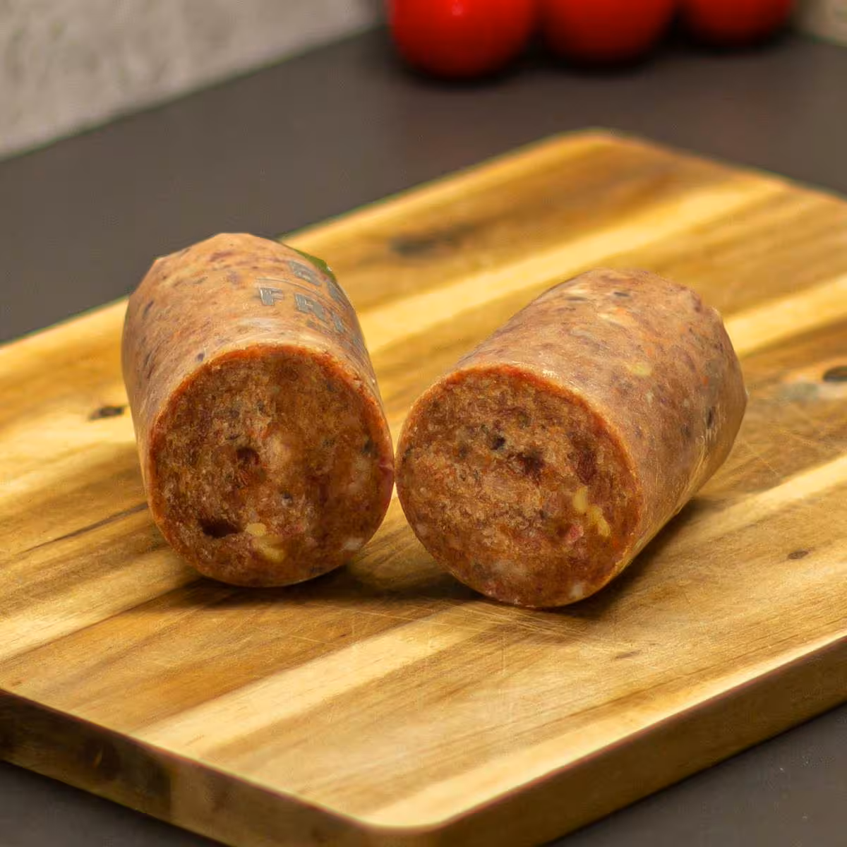 48,5% Putenfleisch (24% Muskelfleisch, 8,5% Fett, 6% Mägen, 5% Herz, 5% Leber), 30% Kaninchenfleisch mit Knochen, 7,02% Karotte, 7% Birne, 5% Cranberry, 1,5% Leinöl, Meersalz, Mineralstoffe
