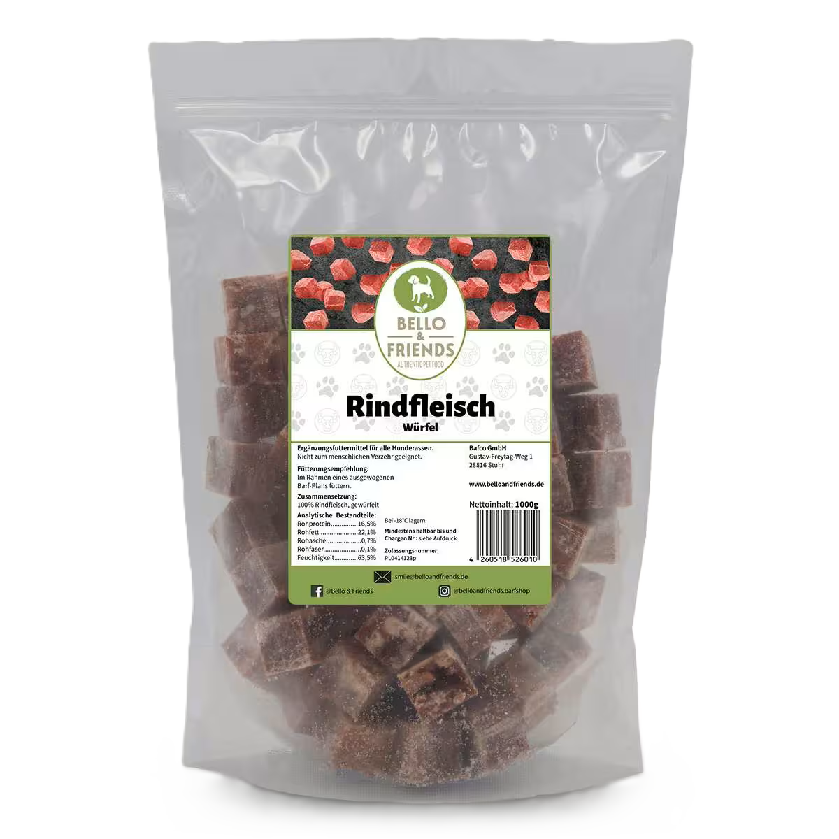 100% Muskelfleisch vom Rind. Eine tolle Grundlage für jedes BARF-Menu. Viel hochwertiges Protein und mageres Fleisch bilden eine bekömmliche und sättigende Basis.
